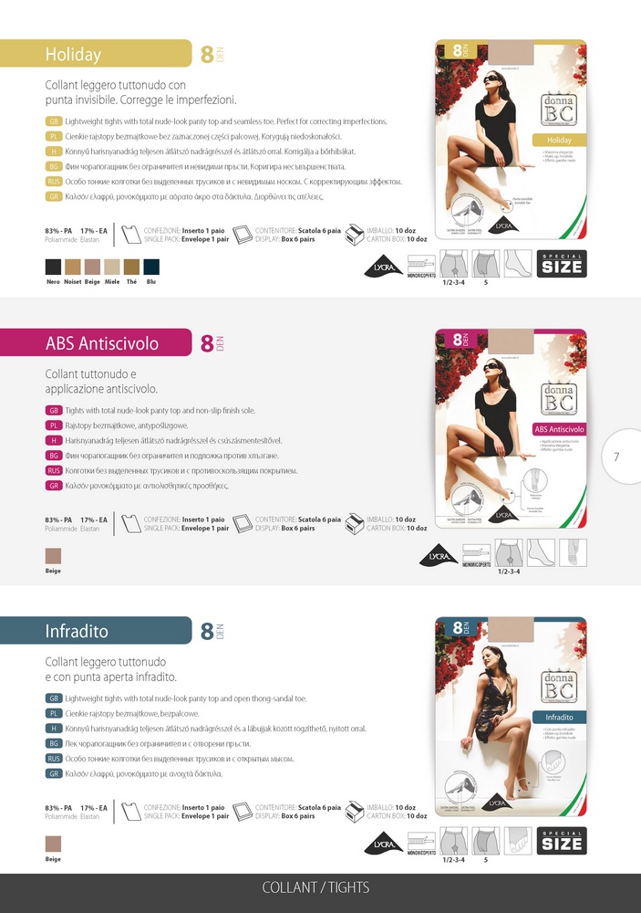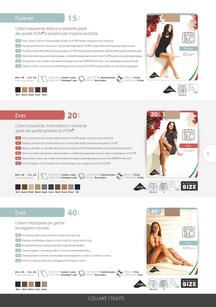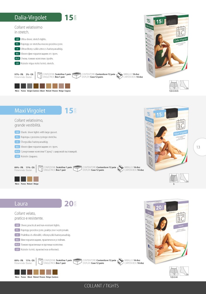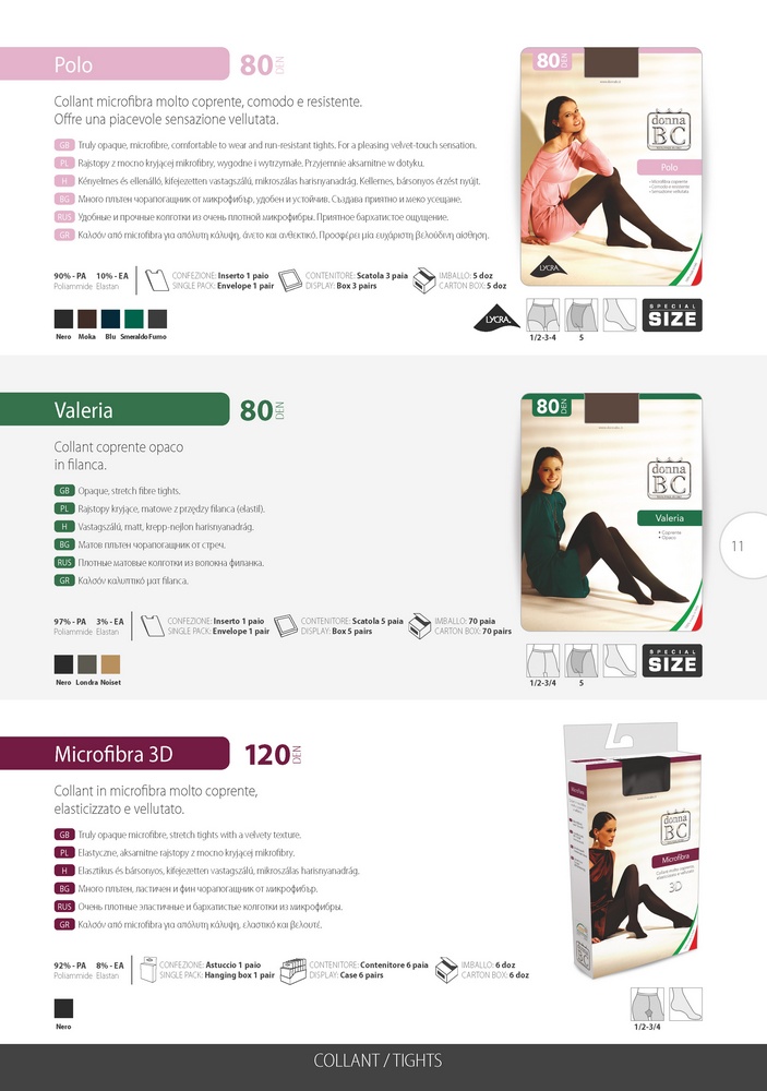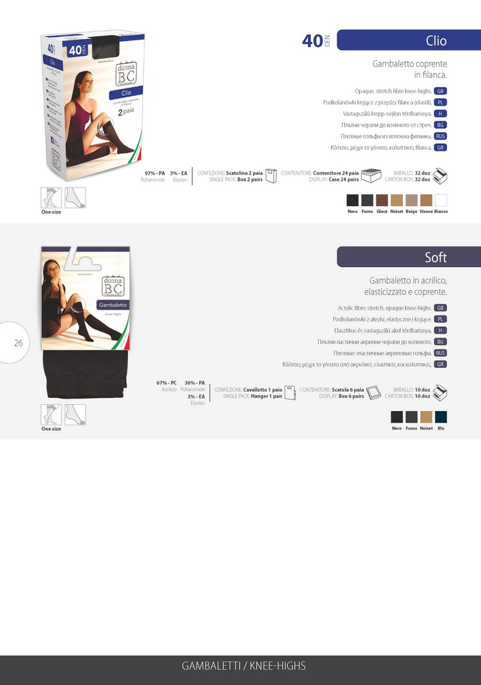 Tonalità calde e suggestive, giochi di luce seducenti, atmosfere mediterranee: in Donna BC, tutto evoca lo stile e l’eleganza italiana. Da più di 60 anni, infatti, le calze e i collant Donna BC interpretano le mille sfaccettature della femminilità attraverso filati pregiati e lavorazioni ricercate, per prodotti dalla qualità 100% made in Italy.