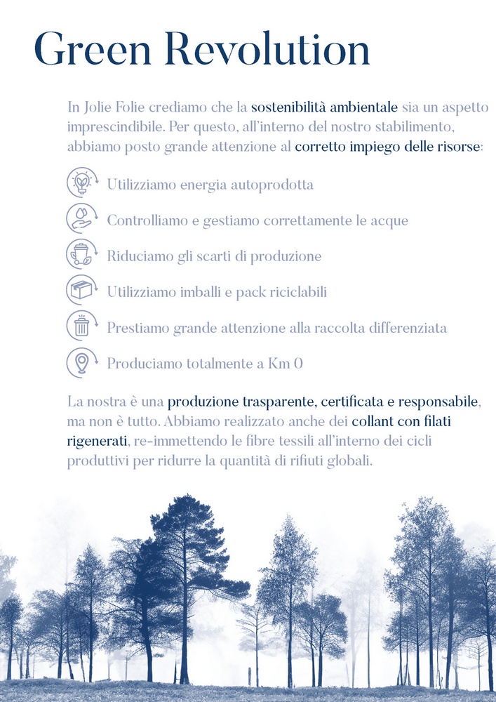 I modelli Jolie Folie vengono realizzati a Castel Goffredo, in Italia, attraverso una filiera produttiva tracciata e trasparente, che opera nel rispetto della salute delle consumatrici.